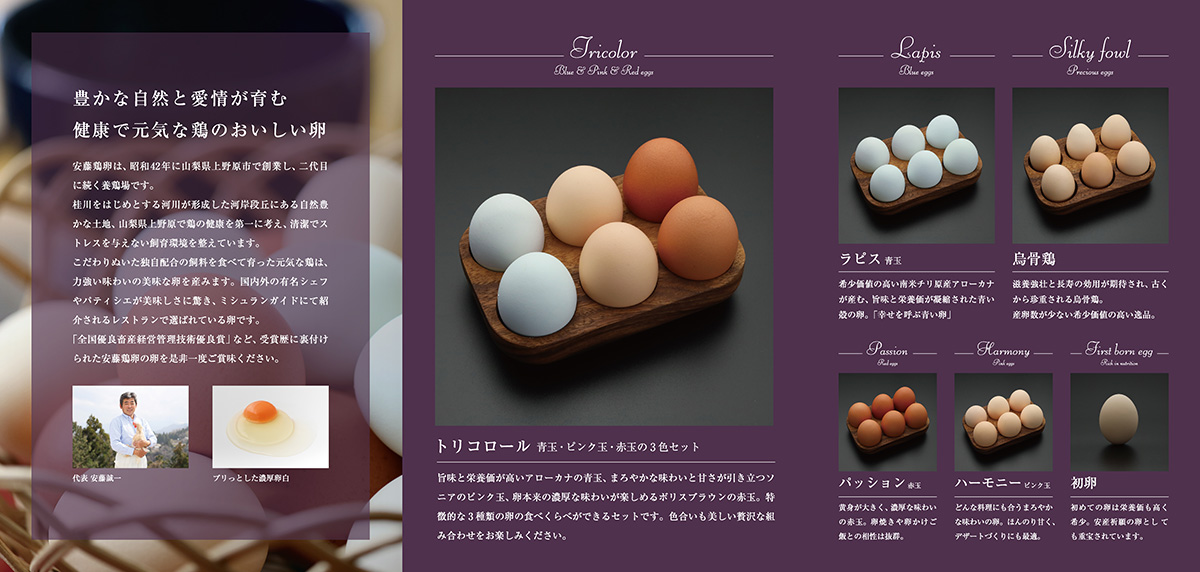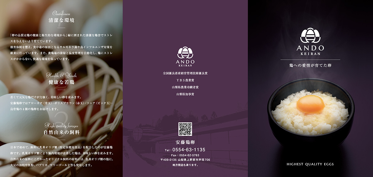 鶏卵業者様から、オリジナルブランドの高品質な3種類の卵のパンフレットをご依頼いただきました。